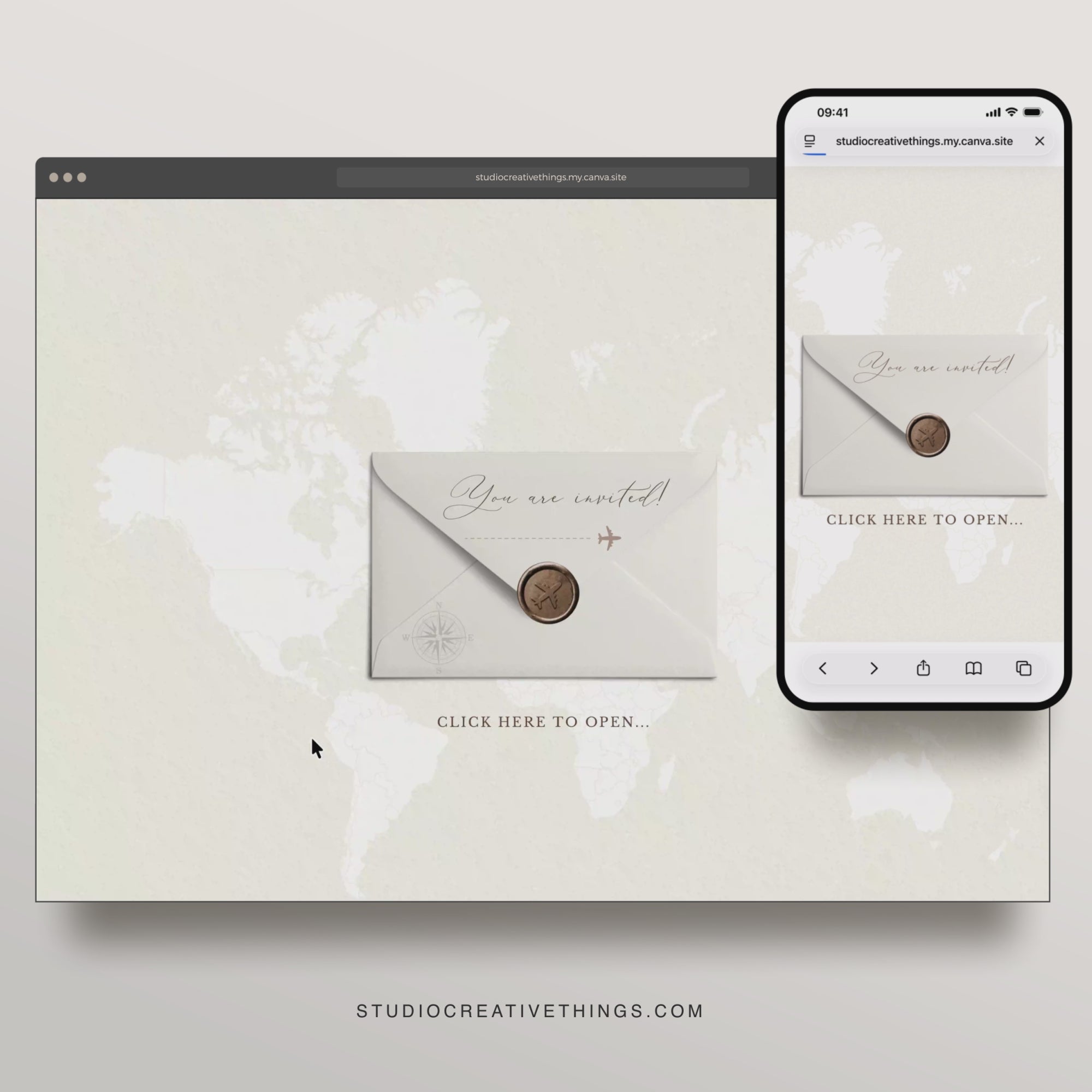 Our online wedding invitations are editable in Canva, giving you the freedom to customise text, colours, and photos before publishing and sharing your invitation via a simple link.