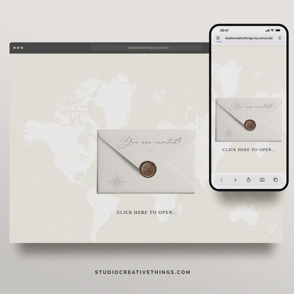 Perfect for couples planning a wedding abroad, this digital Save the Date blends elegance, practicality, and wanderlust into one unforgettable online announcement.