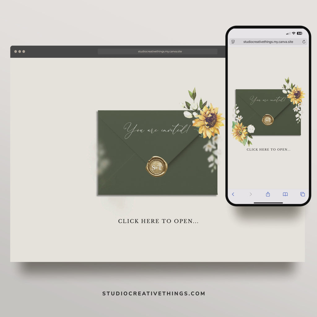 You'll receive an online invitation template that you can edit yourself in Canva — then link your Creativite RSVP Page to collect and manage guest responses seamlessly.